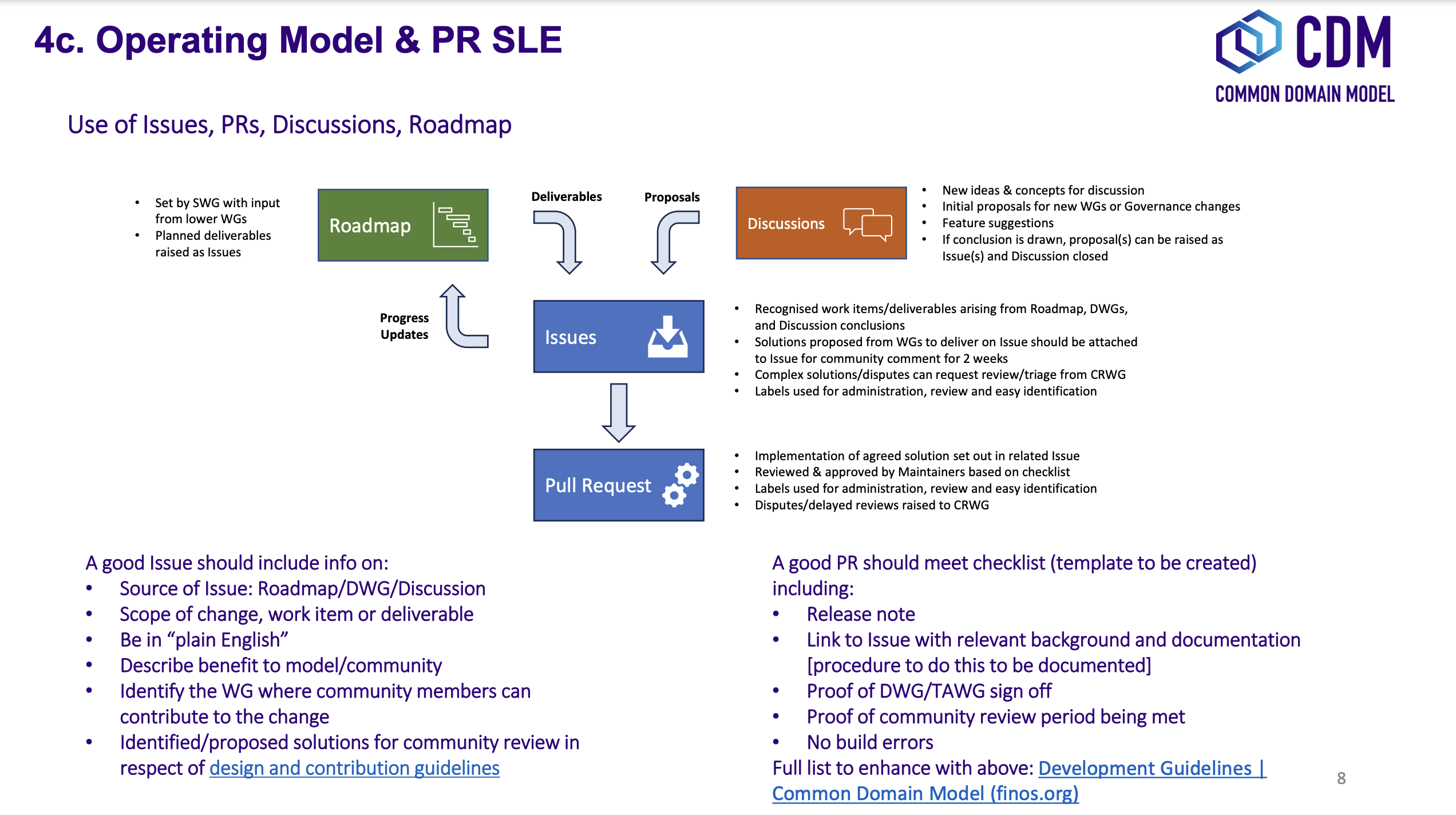 The purpose of this section is to provide guidance for submitting, reviewing and releasing changes to the CDM contributed by the wider industry community including market participants, trade associations and technology or service vendors. It describes: